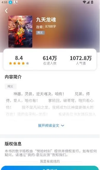 3.进入到小说详情页面中点击“免费阅读”按钮进入下一步