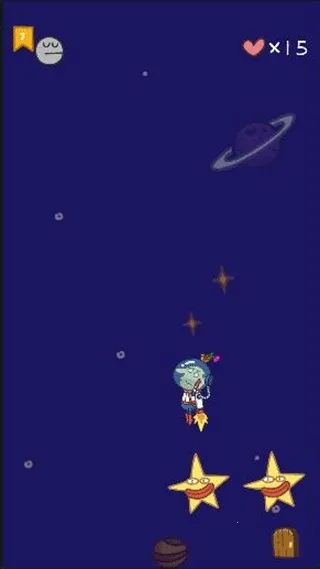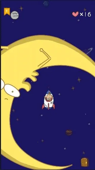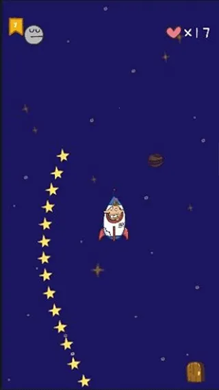 这个关卡需要我们一直按住屏幕即可,让火箭飞到太空,去寻找我们的狗狗。