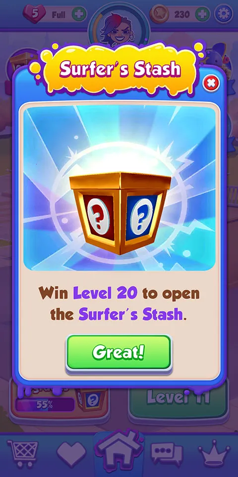 如果你想体验一场刺激的地铁跑酷冲浪者比赛,那这款游戏绝对适合你!它有着丰富多样的玩法。采用经典三消玩法,将相同颜色方块排列消除,完成任务就能获奖励并解锁更高难度关卡。点击主界面右下角Level按钮即可进入关卡挑战,每个关卡都有独特目标。胜利后能得蓝色星星奖励,用来升级主界面场景元素,升级进度达100还能解锁新主题场景。获取宝箱的方式也很多,升级等级、通过一定数量关卡或者让场景元素升级进度到100都能拿到。游戏特色更是亮点满满,能与各种角色搭档破解谜题,探索并装饰滑板天堂,组建团队赢取特别奖励,还有超强道具助力通关。而且随时随地都能玩,支持离线,拿起就享受消除格子的乐趣,无论是碎片时间还是长时间休闲都很棒!