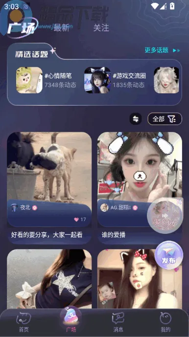 3. 广场话题:多元话题能结识同好,用户可参与各类热门讨论,分享生活点滴,倾诉内心感受,觅得志同道合的伙伴。