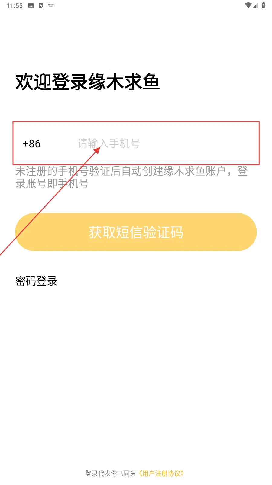 1、打开应用,填写手机号。