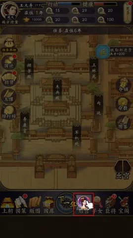 2、首先是上朝,随机点击兵部、礼部等上书奏折,根据选择来获取/减少声望、政务。