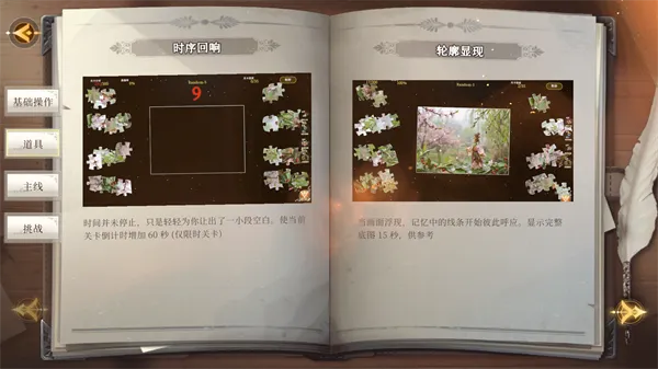 2.道具使用策略里,时序回响道具用于限时关卡,时间紧张时使用能增加60秒倒计时,为复杂拼图多争取思考时间。轮廓显现道具在整体构图不明时使用,可显示完整底图15秒,助玩家快速定位关键碎片,尤其适合高难度无参考图关卡。