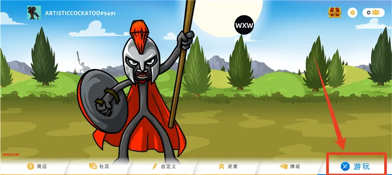 1、刚进入主页我们需要点击右下方游玩的选项,并选择对战。