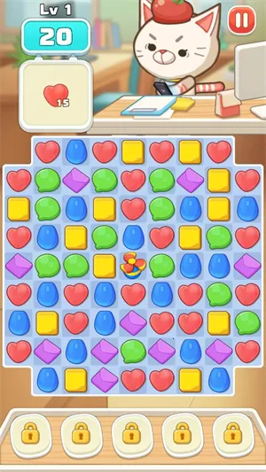 游戏提供各种辅助工具,帮你顺利通关。还设有真人PVP对战,能和高手限时比拼,登上荣誉排行。它采用明亮温馨色彩,搭配轻快音乐,营造舒适办公室氛围,让你视觉和身心都能放松。平台会定期更新新关卡、活动和可爱动物同事,保持新鲜感。进入游戏跳过剧情就能开始闯关,按要求消除指定方块,在规定步数内通关还能解锁新区域和剧情,玩法内容超丰富,能让你获得更多快乐。