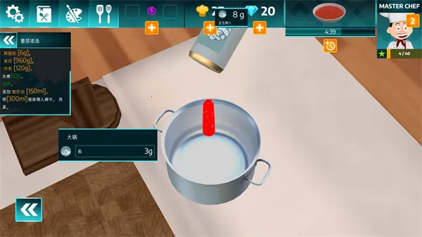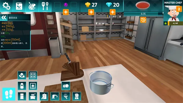 4、真实操作手感:操作手感真实,尤其在颠勺炒菜时重力感逼真,且制作过程应用真实物理原理,如切菜需按要求等份切取、煎肉要适时翻面等。