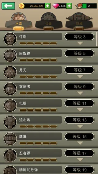 水雷受制于等级所影响,人物3,5,7,9,11113,15,17,19级解锁,且强化升级能够大大增强其强度,需要在挑战中前自主选择。