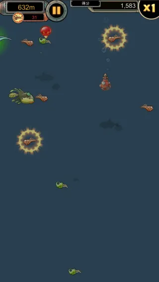 2、第二个过程:水雷上浮,上浮过程中你所击杀的鱼类都将是你所收集的图鉴,所以游戏非常考验你的躲避灵敏力。
