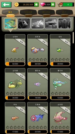 由于游戏中的鱼种类非常之多,而且随着挑战不同的主题场景和关卡所收集的鱼类也肯定有所差异。