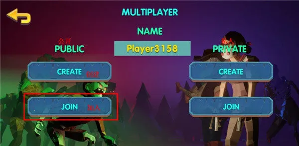 2、选择【公共房间】或【私人房间】:前者可快速加入活跃服务器,后者支持自定义房间密码,便于好友间精准组队;
